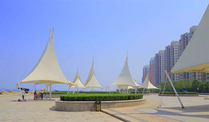 膜結(jié)構(gòu)是一種建筑與結(jié)構(gòu)結(jié)合的結(jié)構(gòu)體系,是采用高強(qiáng)度柔性薄膜材料與輔助結(jié)構(gòu)通過(guò)一定方式使其內(nèi)部產(chǎn)生一定的預(yù)張應(yīng)力,并形成應(yīng)力控制下的某種空間形狀,作為覆蓋結(jié)構(gòu)或建筑物主體,并具有足夠剛度以抵抗外部荷載作用的一種窄間結(jié)構(gòu)類型。