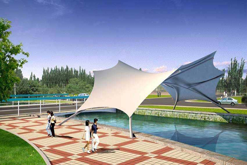 張拉膜是由多種高強薄膜材料及加強構(gòu)件(鋼架、鋼柱或鋼索)通過一定方式使其內(nèi)部產(chǎn)生一定的預(yù)張應(yīng)力以形成某種空間形狀