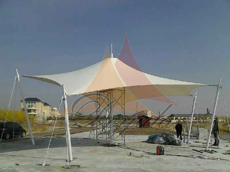 張拉膜結(jié)構(gòu)的美就在于其“力”與“形”的完美結(jié)合。張拉膜結(jié)構(gòu)的基本組成單元通常有:膜材、索與支承結(jié)構(gòu)(桅桿、拱或其他剛性構(gòu)件)