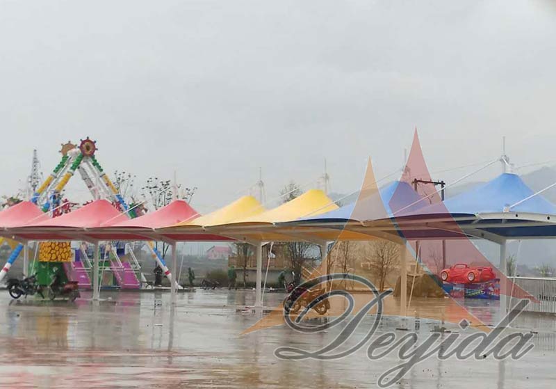 張拉膜結(jié)構(gòu)是指通過(guò)拉索將膜材料張拉于結(jié)構(gòu)上而形成的,張拉膜結(jié)構(gòu)也可稱為張拉式索膜結(jié)構(gòu),是由穩(wěn)定的空間雙曲張拉膜面、支承桅桿體系、支承索和邊緣索等構(gòu)成的結(jié)構(gòu)體系。